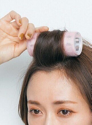 太めのカーラーを根元に当て、髪を上に引き上げながら毛先まで巻きつける。根元まで巻き1~2分置いて外す。