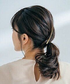 定番のひとつ結びも少し工夫するだけでおしゃれな印象に。今回は2ブロックに分けて結ぶことで、ボリュームアップも実現。ヘアアクセ次第でちょっとしたお呼ばれにもOK。