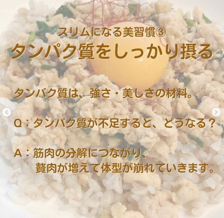 「タンパク質は、強さ、美しさの材料」というshoco.mint9さん。タンパク質が不足すると、筋肉の分解につながり、ぜい肉が増え、体形もくずれていくといいます。shoco.mint9さんの美ボディは、栄養バランスのとれた良質な食事からつくられているのです。