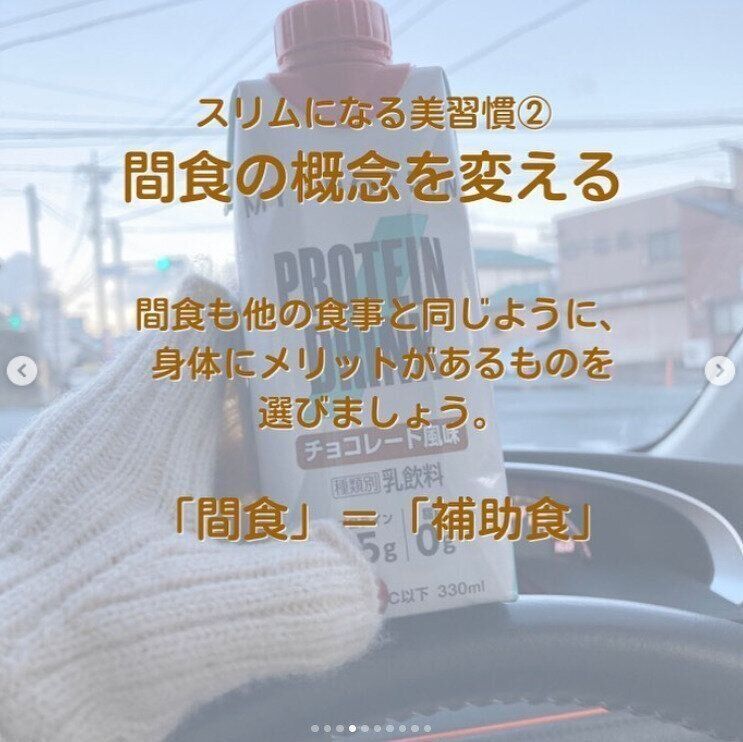 「間食も、ほかの食事と同じように体にメリットのあるものを選びましょう」といいます。shoco.mint9さんは、間食を我慢するのではなく、「間食=補助食」と考え、食べるもの、飲むものを選んでいるのです。
