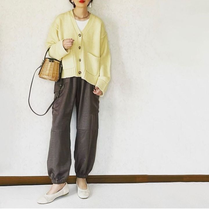 カジュアルなムードをつくってくれるカーゴパンツは、今季のトレンドアイテム。しまむらのカーゴパンツはツヤ感のある素材で上品に着こなすことができます。太すぎず、細すぎないシルエットでトップスを選ばず合わせやすくて◎。