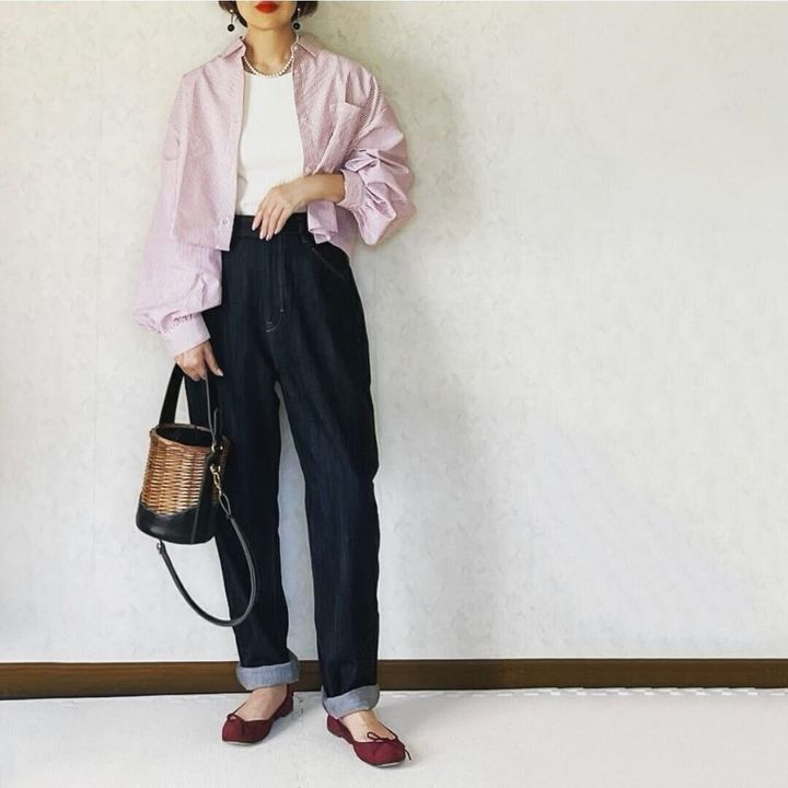 この春は、ショート丈のトップスも見逃せません。おへそを見せるのは抵抗のあるかたにおすすめなのが、シャツタイプのショート丈トップス。インナーを着ればお腹まわりを気にせず、旬なショート丈を満喫できます。上半身がコンパクトにまとまり、バランスアップにも直結!