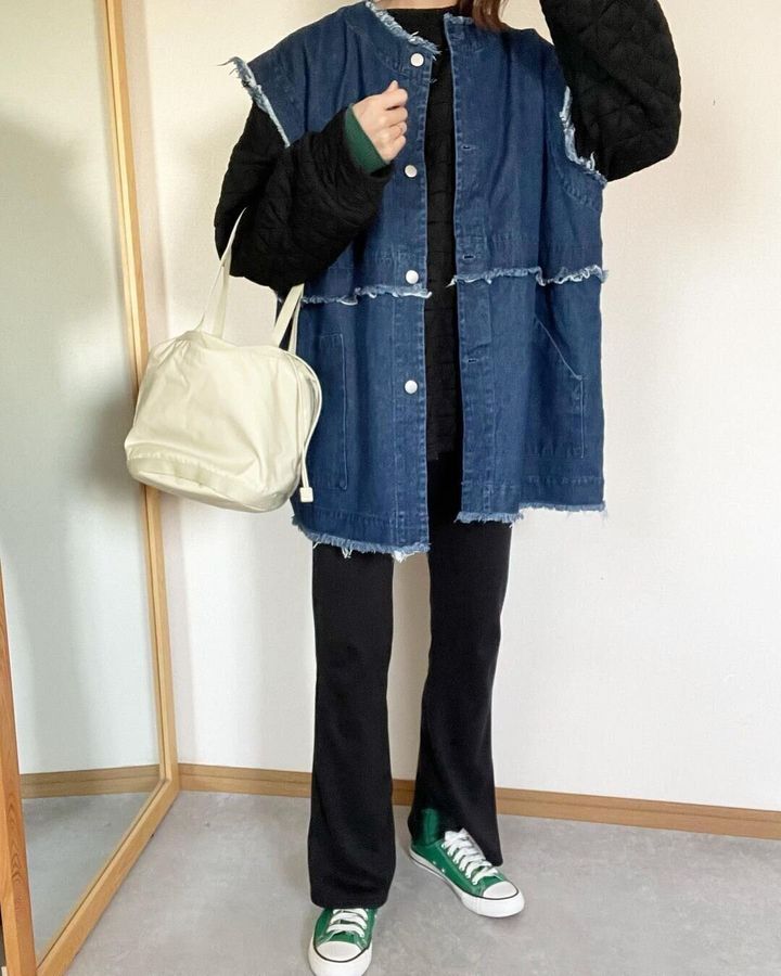 すぐに暖かな初夏の気候になってしまうので、少数精鋭で選びたい春のアウター。袖のボタンを外せばデニムベストとしてロングシーズン着回せる「2WAYデニムジャケット」がしまむらでヒットしているのはご存じでしょうか。切りっぱなしのデザインが、オシャレ感を加速してくれます。