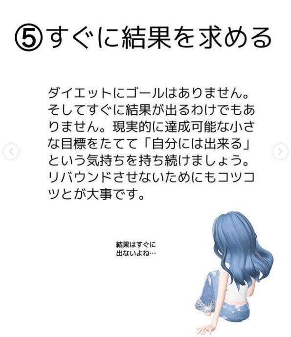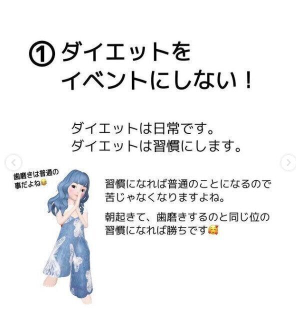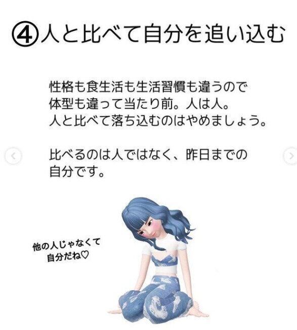 ダイエットに成功した人のSNSなどを見てしまい、落ち込んだことはありませんか?zuboran__beautyさんいわく、「性格も食生活も生活習慣も違うので、体形も違ってあたりまえ」なのだと。人と比べて落ち込んでもストレスの素。「比べるのは人ではなく、昨日までの自分です!」といいます。