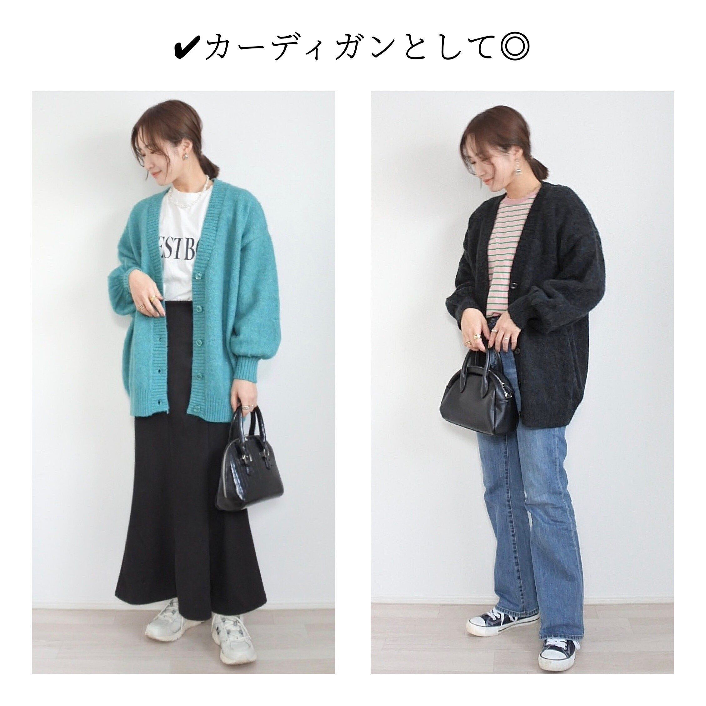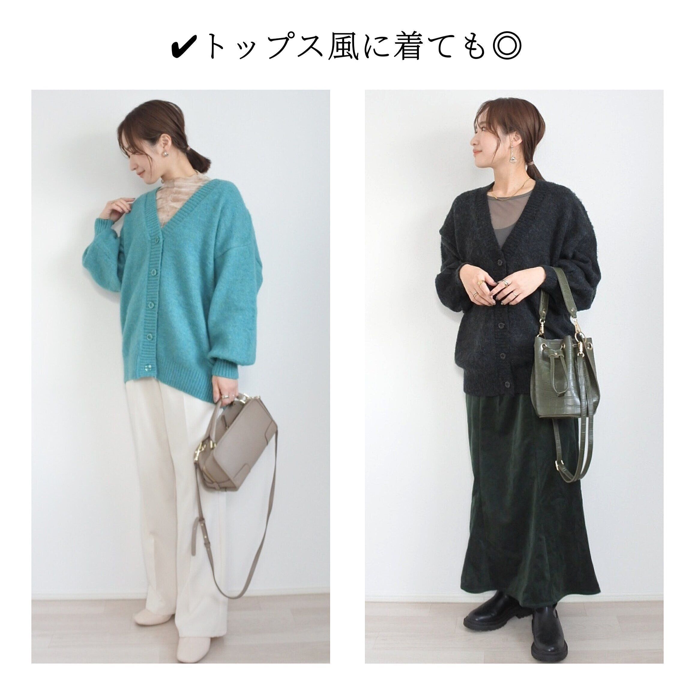 カーディガンなので前を開けて羽織としてはもちろん、トップスとしても着回せるのでさまざまな着こなしが楽しめます。