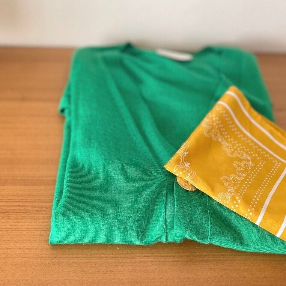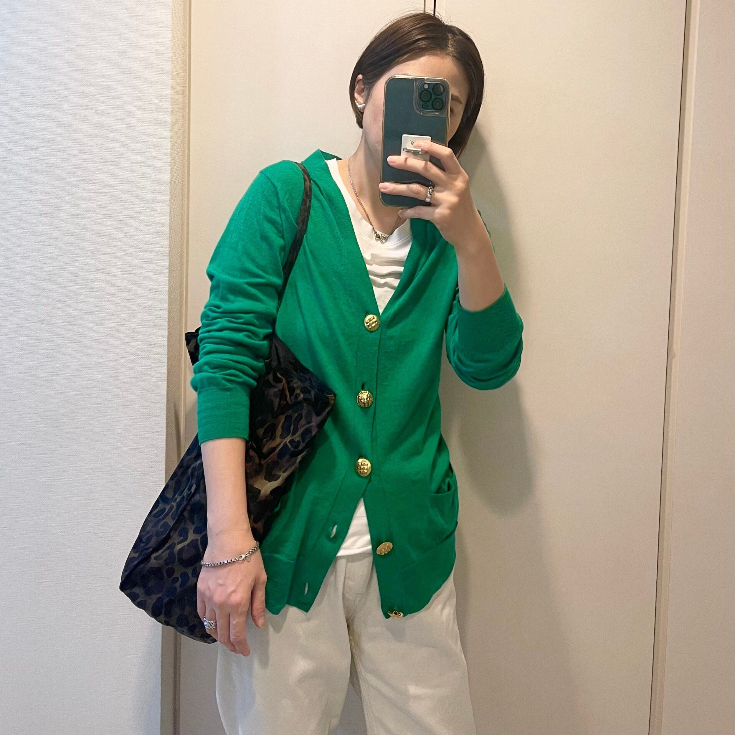 例えばこのグリーンのカーディガン。