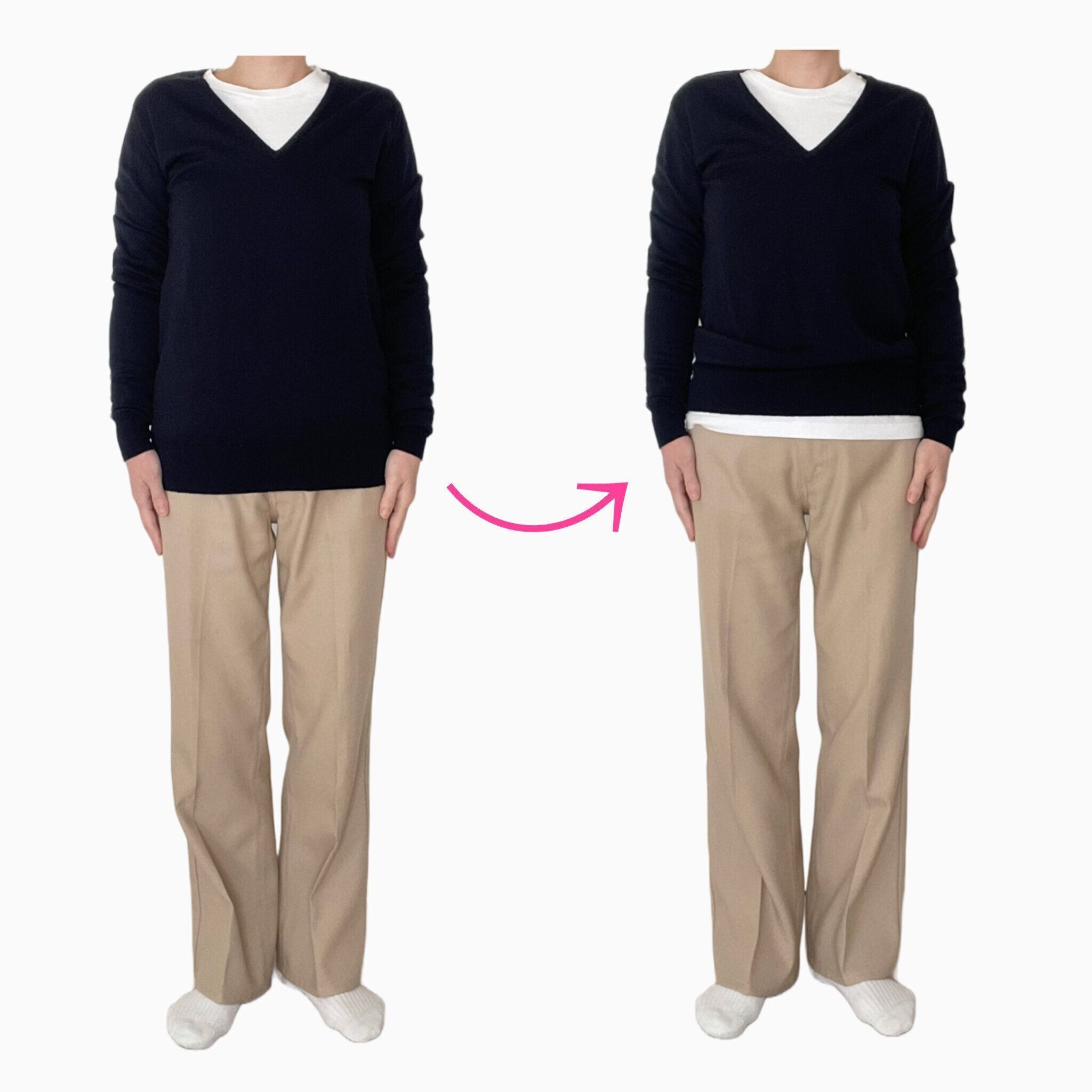 お腹を隠すために、トップスをギリギリまで伸ばして着てしまったり、出来るだけお腹が隠れるトップスを選んだり、そこに労力を掛けたくなる所。