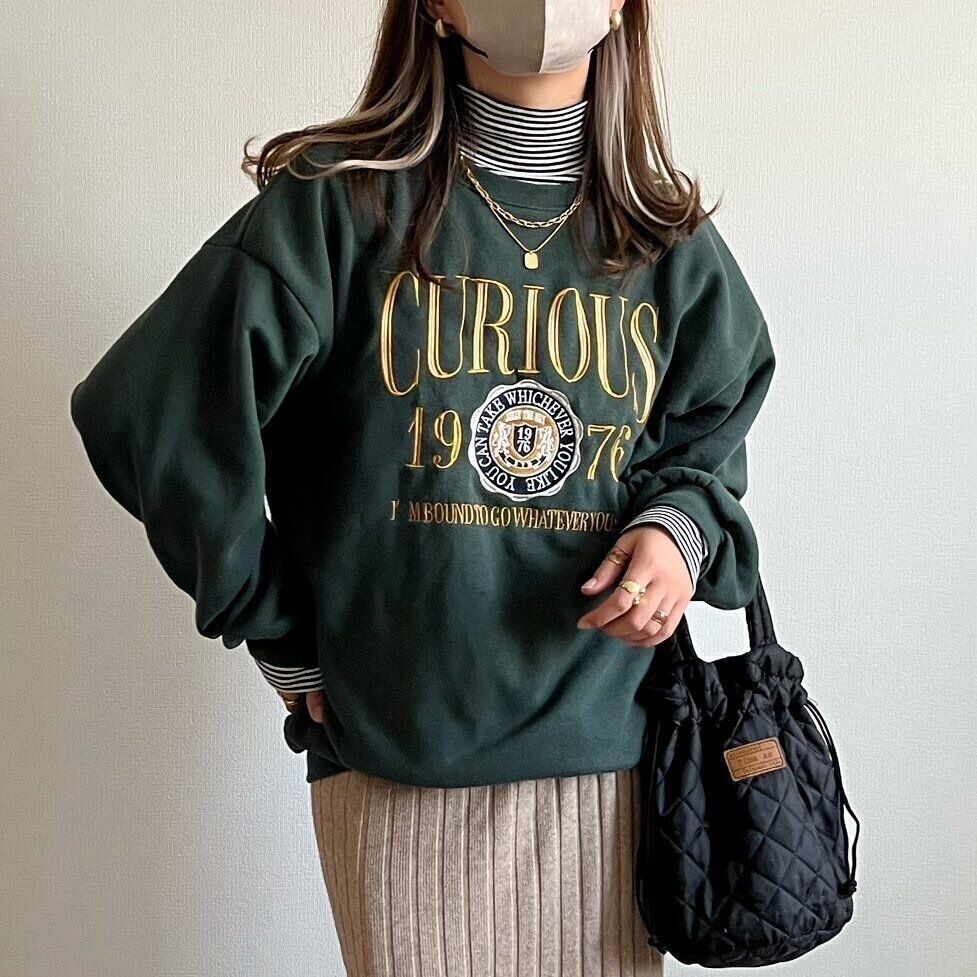 トレンドのカレッジロゴスウェットにレイヤードしてみました♪