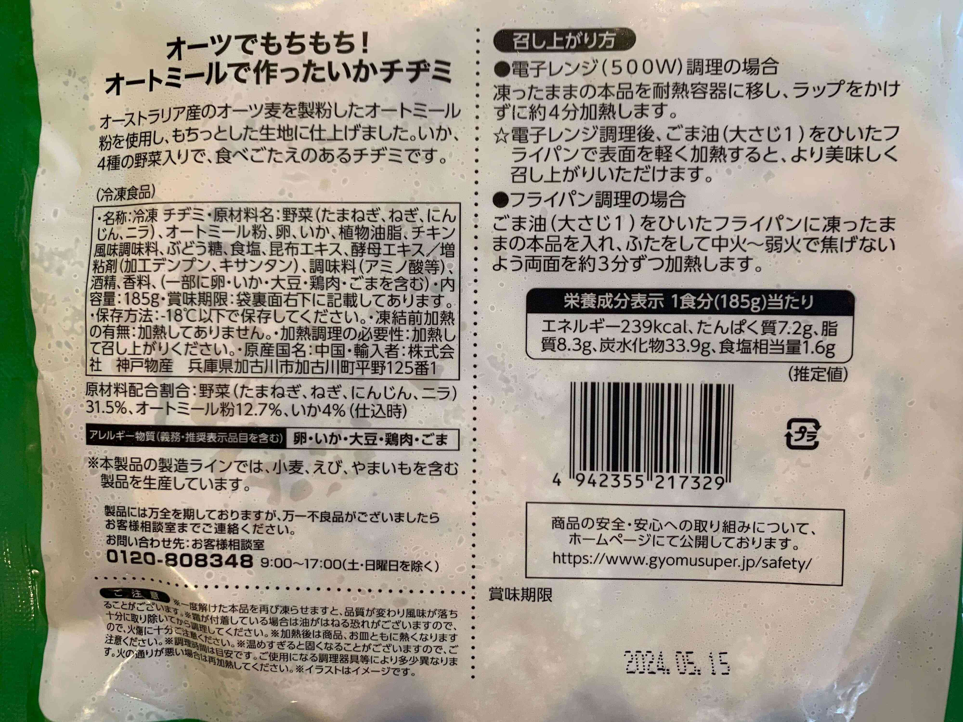 そんなオートミールを使ったヘルシーな粉もの冷凍食品を、業務スーパーで発見しました。
