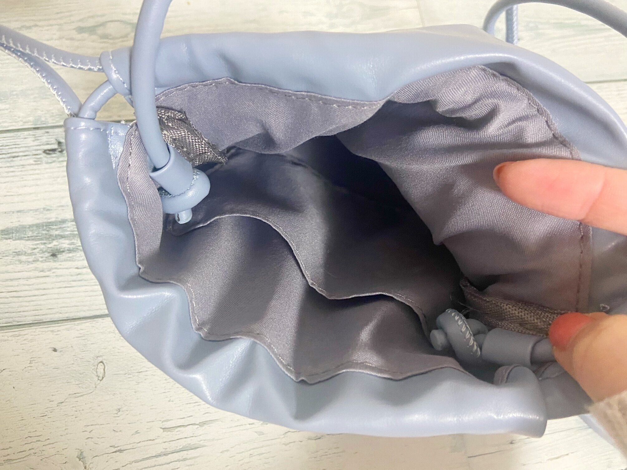 小さいショルダーバッグですが、財布・スマホ・ハンカチ・モバイルバッテリー・鍵……と、必要最低限のものはしっかり入ります。スーパーの買い出しやショッピングなど活躍するシーンが想像以上に多いですよ。そして、自転車に乗る時も安心!巾着タイプで口が閉まるのでバッグの中身が飛び出す心配がありません。両手が空くので小さなお子さんがいるママは特に重宝するはず。