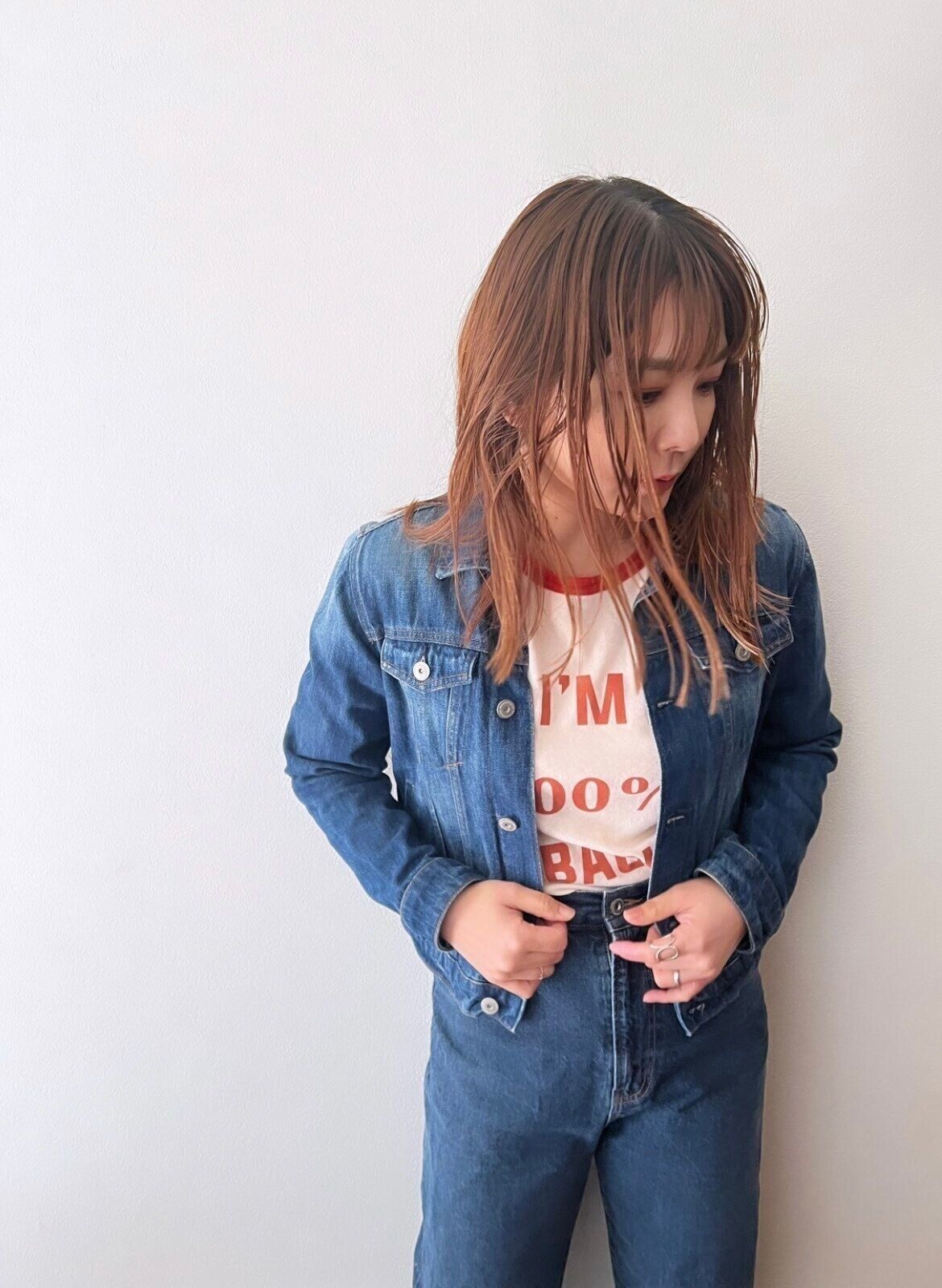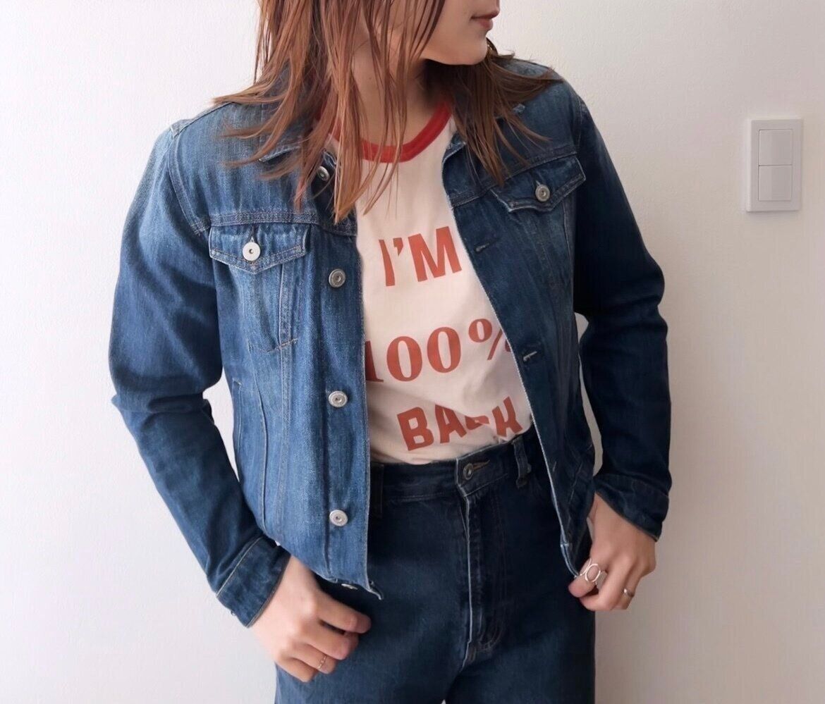 再注目のデニムONデニム!難しいと思われがちですが、同系色(今回の場合はIndigo)で揃えるとバランスよく着られますよ。