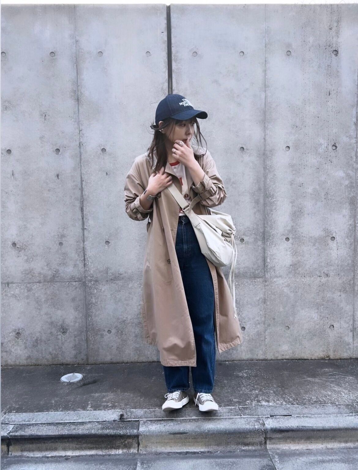 トレンチコート×デニムの王道大人カジュアルコーデが安定の可愛さ!カジュアルなスタイリングにトレンチコートを重ねるだけでこなれ感が出ておしゃれ度アップです。