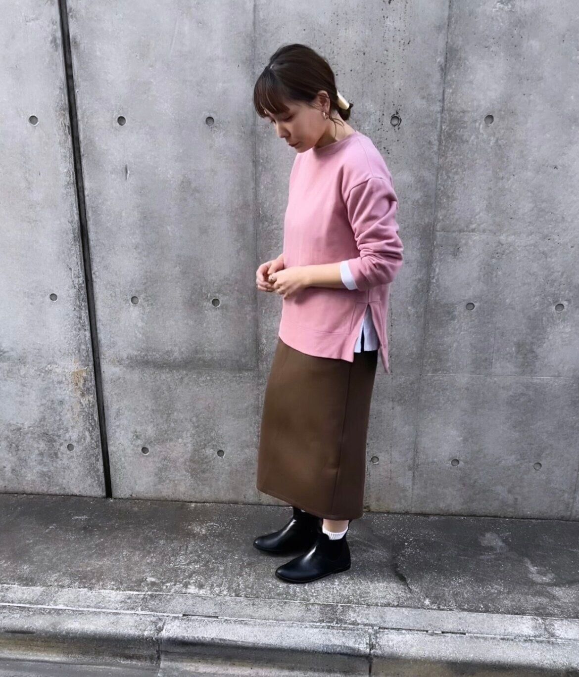 この春は色もたくさん使いたいですよね。よく見かける青みピンクとブラウンとの相性は抜群です。甘くなりすぎなく普段の服にピンクを取り入れやすくなりますよ。