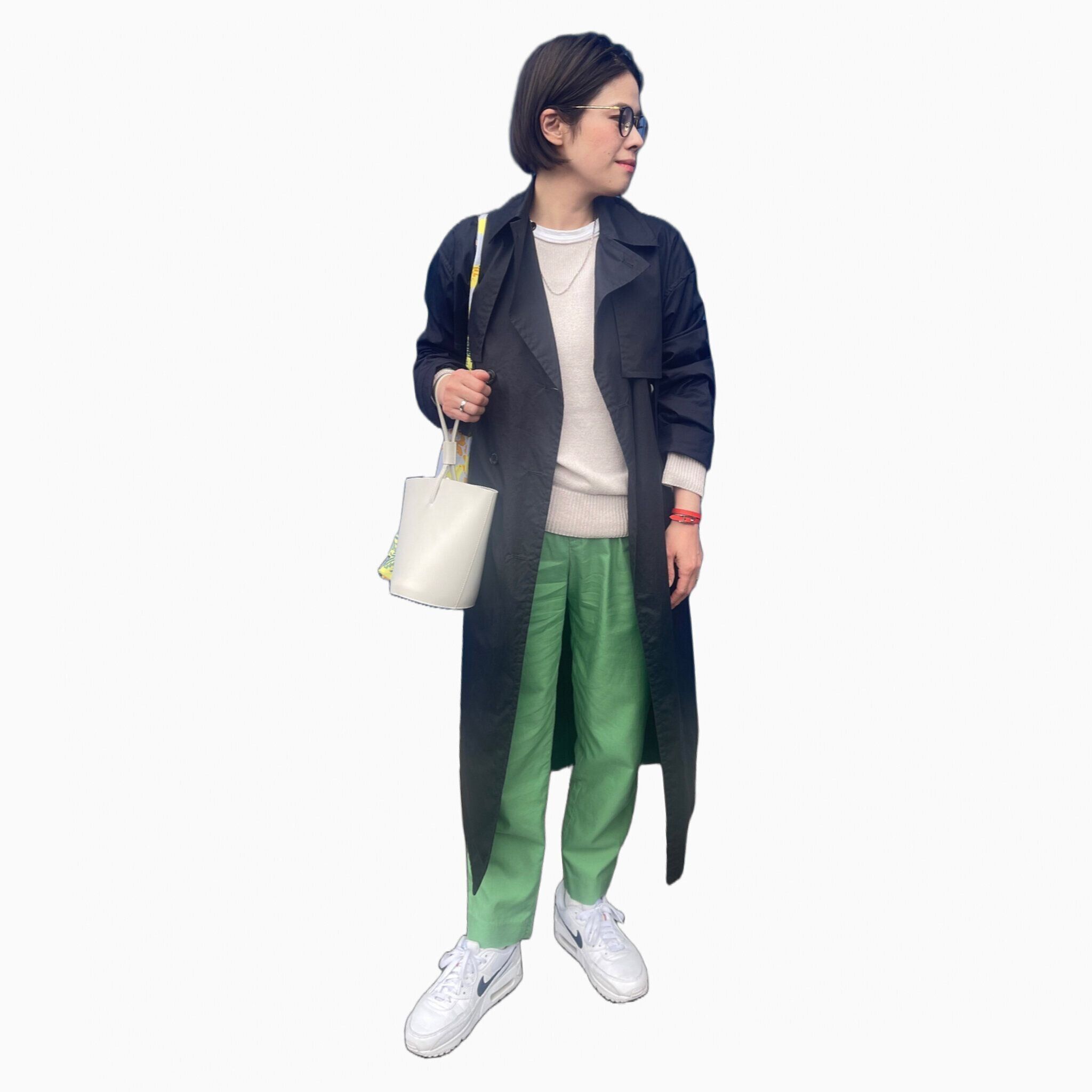 ✔︎デニムを合わせていたスタイリングをキレイ色パンツにチェンジして、脱カジュアル。