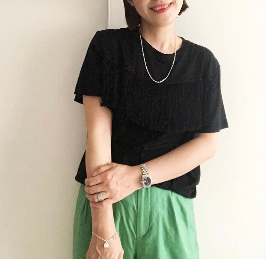 夏はアクセ使いでTシャツも大人の仕上がりに