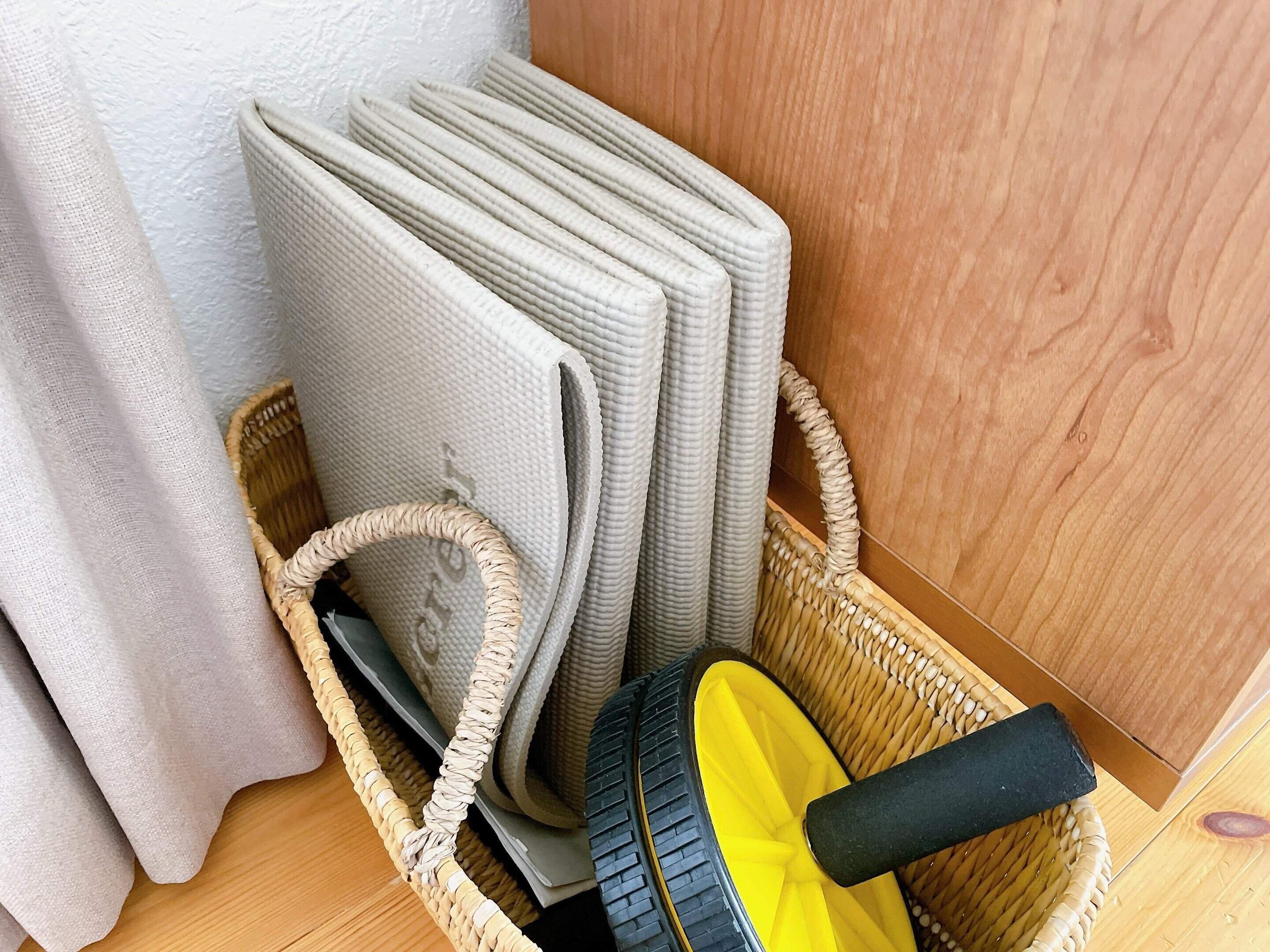 ヨガマットをリビングに敷きっぱなしにするとよい!と聞いて、試してみたものの…邪魔やな…却下。