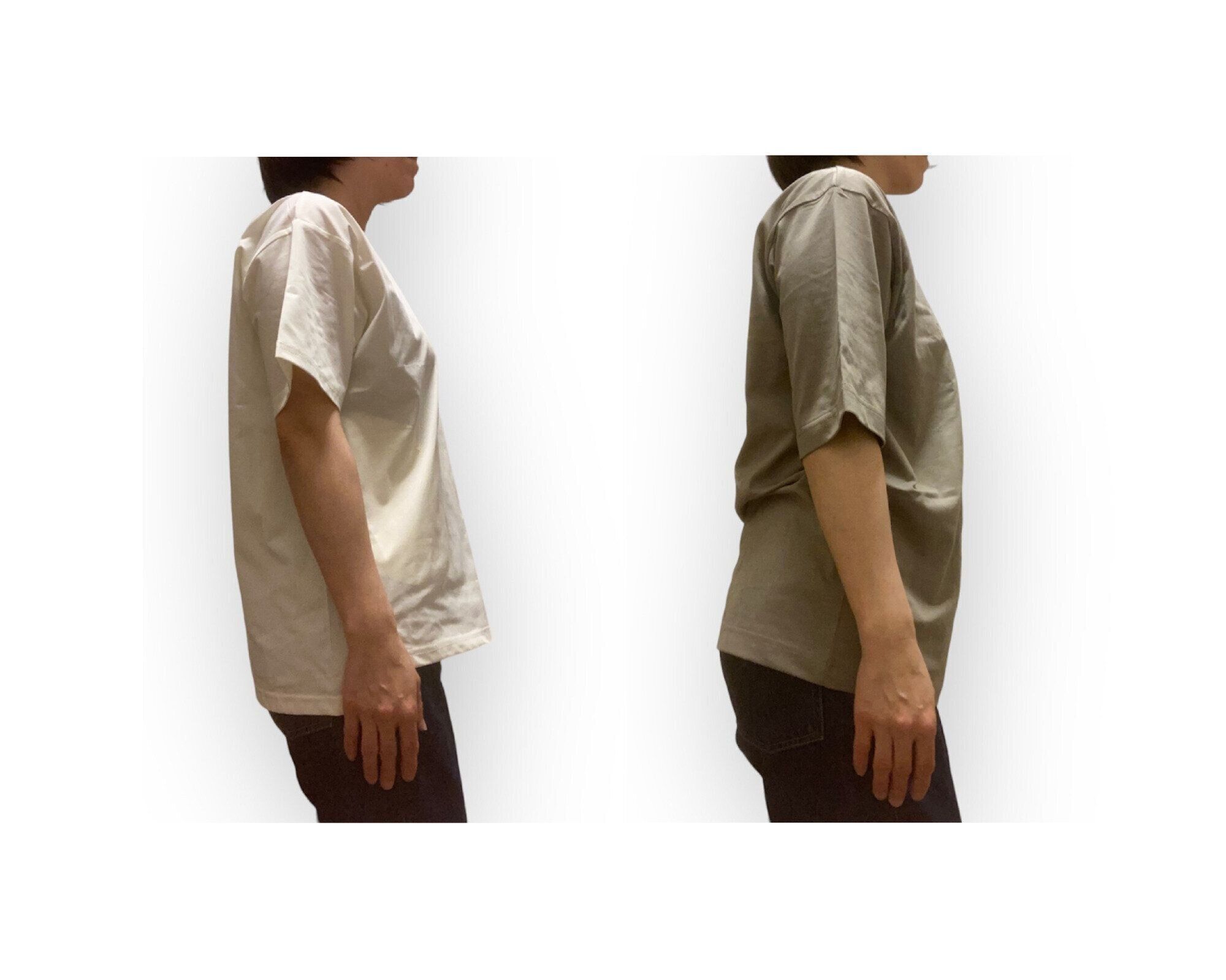 「持続冷感-1℃コットンオーバーサイズ5分袖Tシャツ」の上に「レディースDRYサイドポケットTシャツ」を重ねてみました。