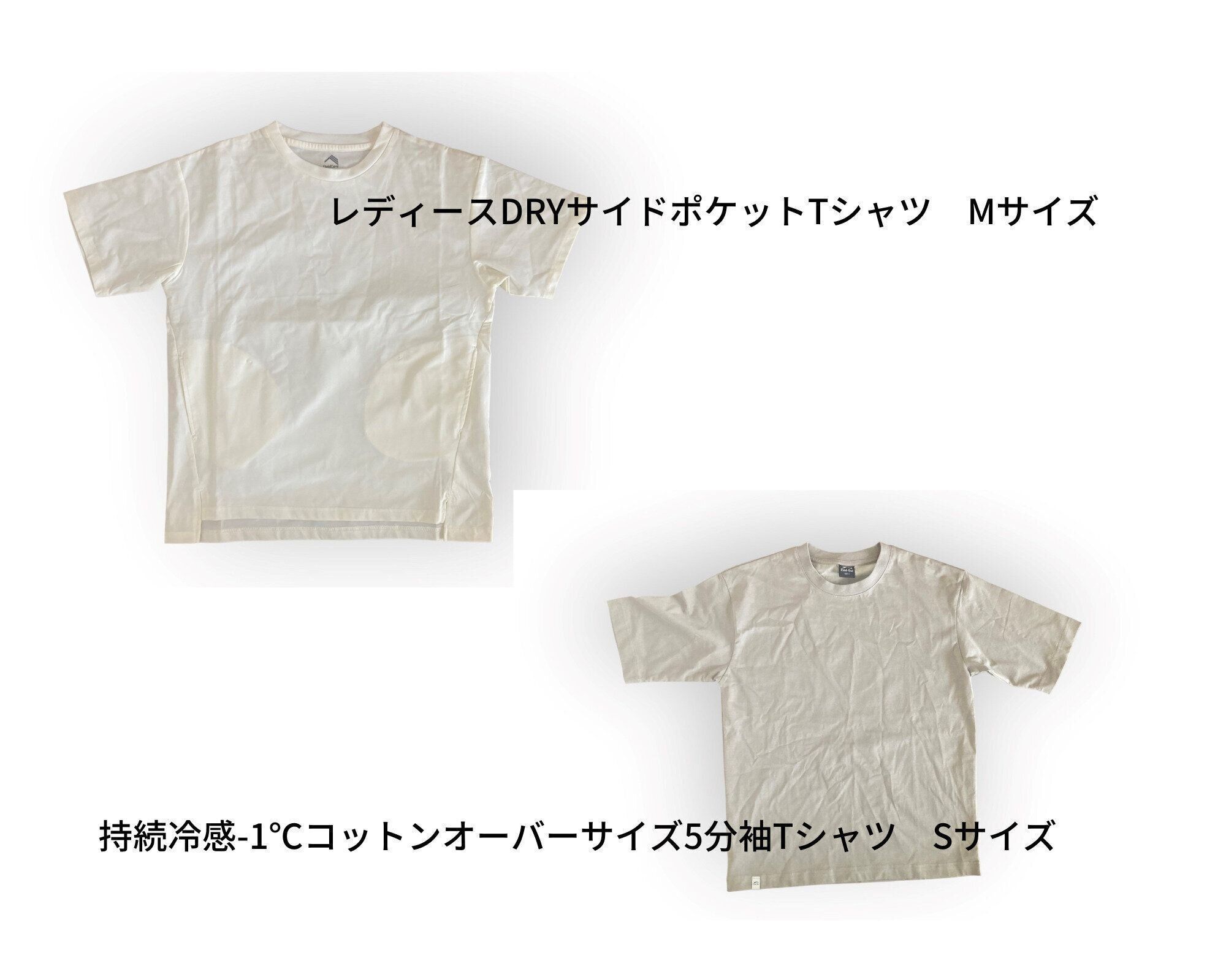 左が「レディースDRYサイドポケットTシャツ」のMサイズ、右が「持続冷感-1℃コットンオーバーサイズ5分袖Tシャツ」のSサイズです。