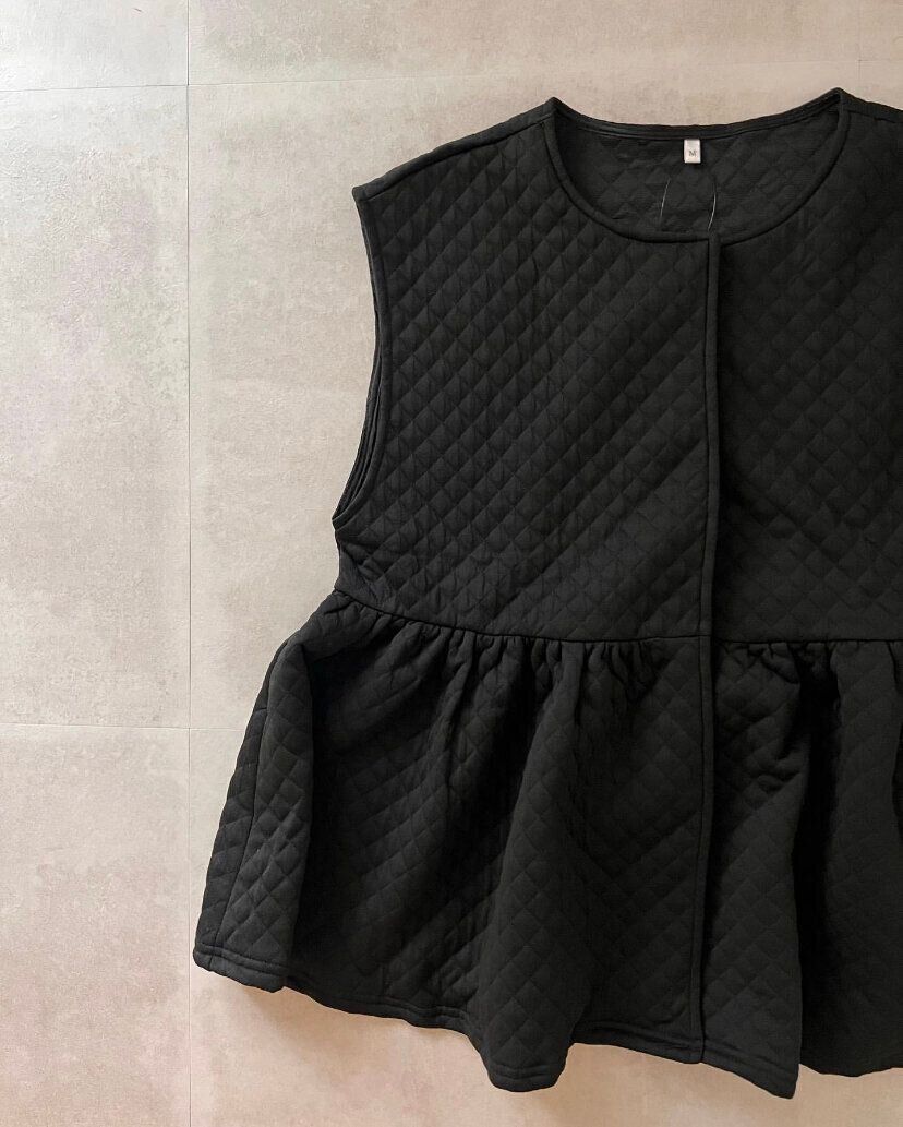 cocaで販売されているキルティングベスト(2,490円)は上品さがあるので大人の女性にピッタリ!ブラウスを合わせればきちんと感もプラスされ、ショート丈のボトムスも大人っぽく着こなすことができます。