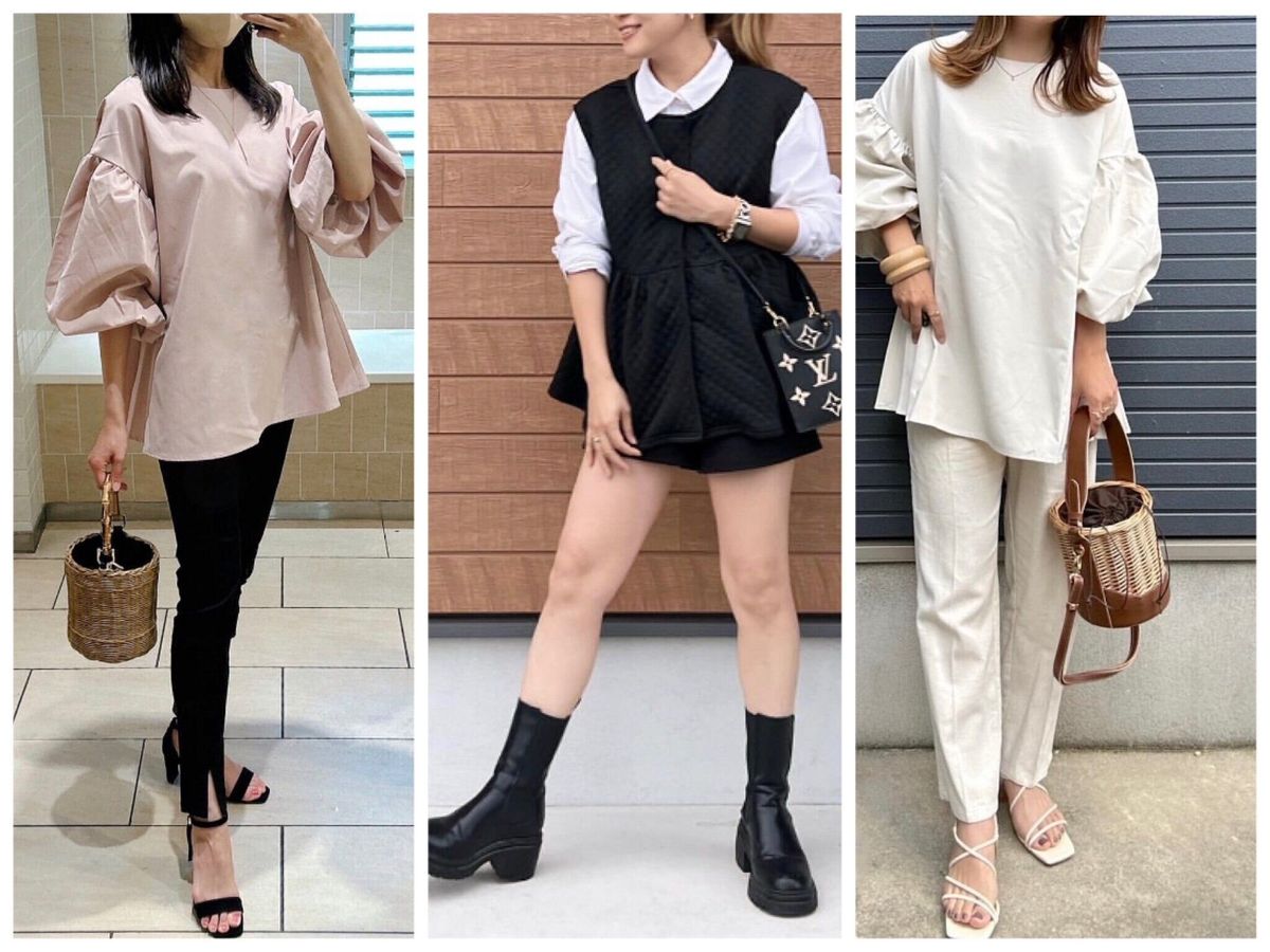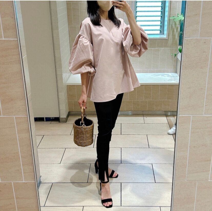 袖にボリュームのあるデザインのバルーンスリーブブラウス(1,690円)はおしゃれなだけでなく、おなかやお尻まわりの体形カバー、更には二の腕もカバーしてくれます。