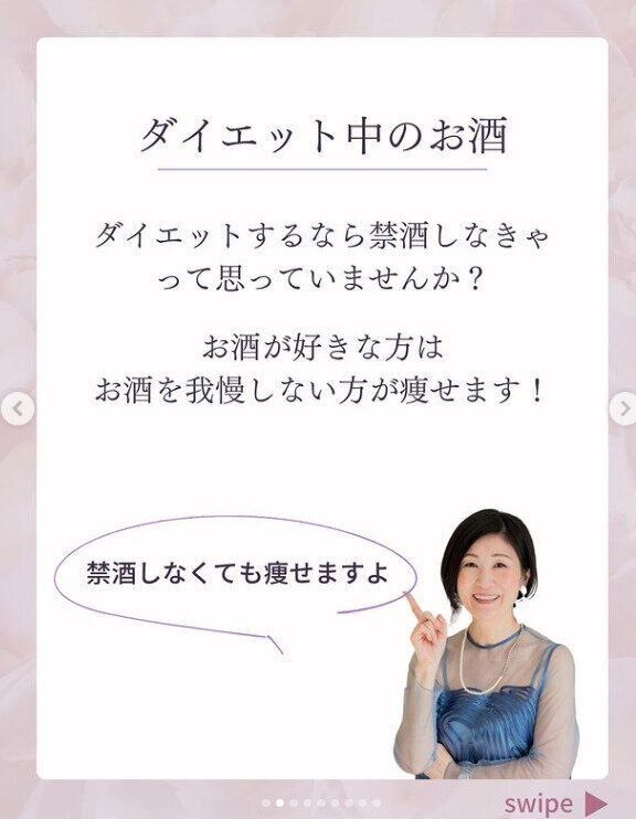 ダイエットをするのならば、お酒は禁物という人も多いですよね。でも、n.fujiwara.dietさんは、大好きなお酒を飲みながらダイエットに成功。お酒が好きならば、「無理をして我慢をする必要はない」といいます。余計にストレスがたまってしまい、ますますお酒の量が増えてしまうことも。我慢をするよりも、上手にお酒とつきあう方法があるといいます。具体的に教えてもらいましょう。
