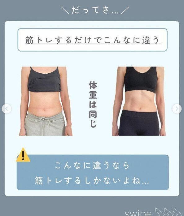 今までの古い考え方を改め、「ダイエットは長い目で」「痩せてもダイエットは続ける」「筋トレに挑戦する」というダイエットをスタート。さあ、結果はどうなっているのでしょうか?上の2枚の写真、じつは体重は同じだといいます。でも、アフターの引き締まったウエストの変化に驚きですよね。yuumaro_diet_diaryさん自身も、筋トレを続けたことで体は確実に変わってきたといいます。