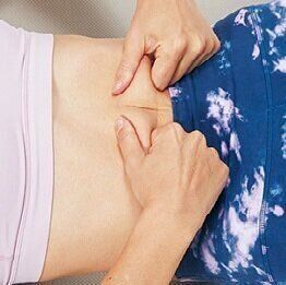みぞおちの筋膜が硬く縮んでいるとぽっこりお腹の原因に。"つまぷる"ではがせば凹む!