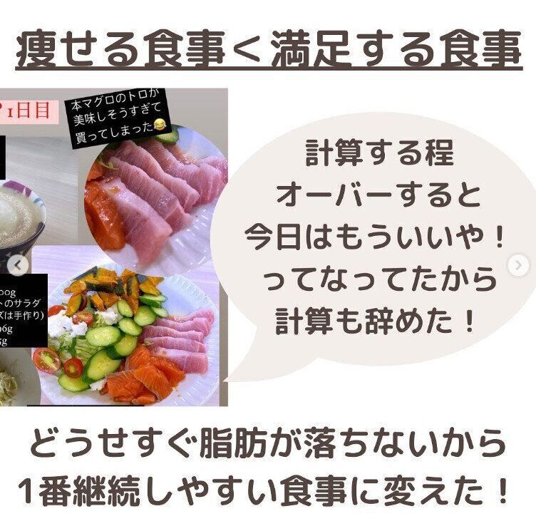 ダイエットとは、個人によって正解は違うものであって、「なぜ自分が太ってしまったか」を考え、それを改善していくことが1番の近道だといいます。yuchan_0033さんの場合は、食への執着でした。ここを改善しないまま、食事改善、運動を続けたことでますますストレスがたまり、反動でまた暴食につながるということを繰り返してしまっていたのです。