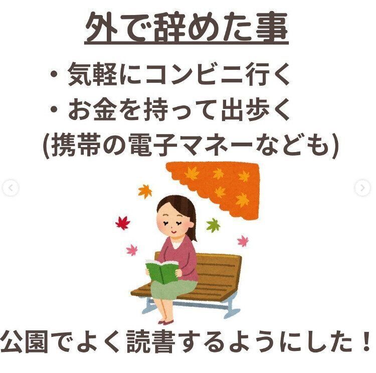 ダイエットを始める以前に、食への強すぎる思いをやめる工夫から始めたyuchan_0033さん。家のなかでは、おいしそうな食べ物の情報をシャットダウン。外に出れば、無駄にコンビニに立ち寄ったり、お金をもって出歩くこともやめ、公園で読書をするなど、食への執着を手放すことを習慣にしました。