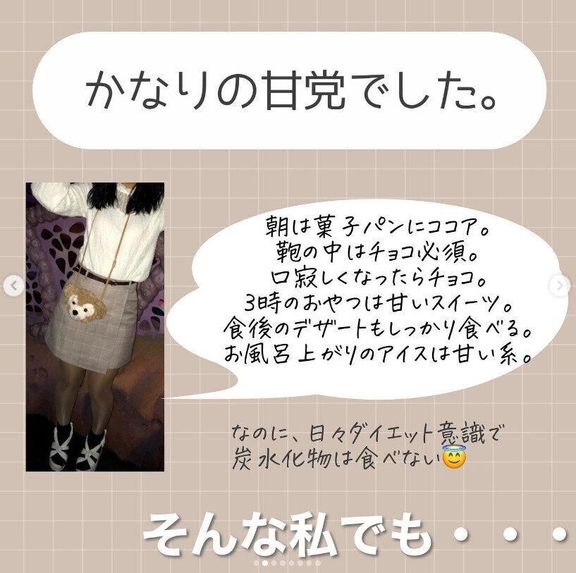 以前の生活は、朝から菓子パンを食べながらココアを飲み、3時のおやつも甘いスイーツ。食後のデザートもしっかり食べる。でも、ダイエットを意識して炭水化物は食べないといった生活を続けていたといいます。現在は、食生活を大きく改善し、栄養バランスのとれた食事を3食しっかりと食べる健康的な生活を続けています。ただ、ご本人いわく「かなりの甘党」。大好きな甘い物だけは、すぐにはやめることができませんでした。「甘い物を食べたい」という欲求をどのように克服しているのでしょうか?