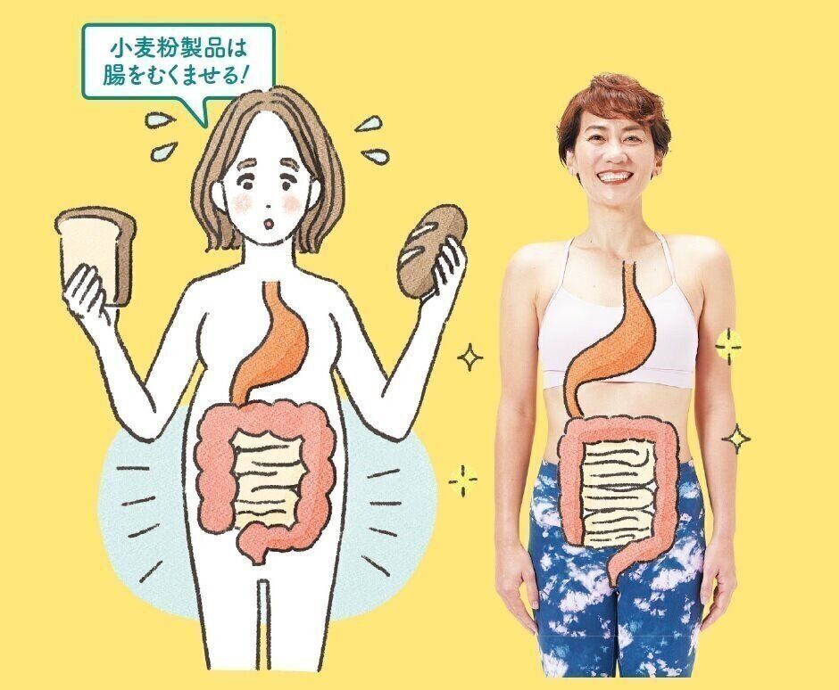 パンやパスタ、うどんなどの小麦粉製品は腸に負担をかけ、結果、代謝が落ちたり、腸をむくませる。また、パンはジャムのように甘い物と一緒にとることが多いのも太りやすい理由です。「1~3日間、小麦粉製品を控えるだけで、余分な水分がスーッと抜けてお腹が凹みます。ただし、無理にゼロにすると結局ストレスになって続かないから、いつもの半分に減らすくらいにとどめてみて。頑張りすぎないのも大事ですよ」。