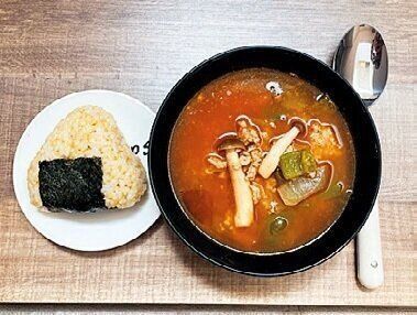 腹もちgoodなスープとおにぎりで、程よい満腹感をキープ。