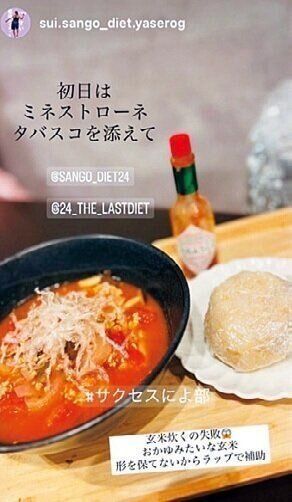 ボリュームたっぷりのスープ&おにぎりで、とにかくお腹がいっぱいになりました。 5日間で、-0.6kg(ちょこんさん)