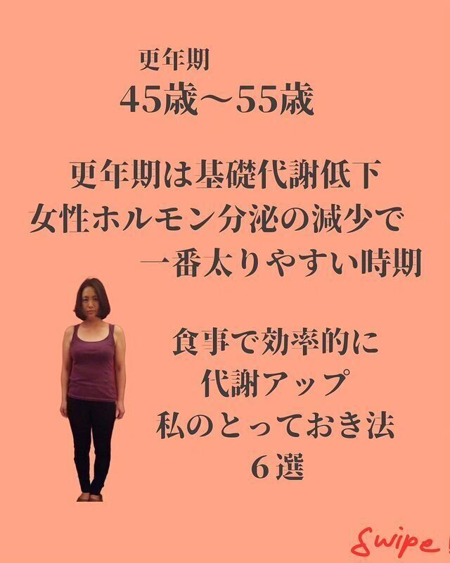 こちらは以前のhealthy_4dietさんの姿。女性の体は、40代も半ばになると、女性ホルモンの分泌の減少もあり太りやすくなるといいます。食生活を改善したことで、下がってしまった代謝をあげて、半年で-8kgというダイエットに成功したhealthy_4dietさん。食事で効率的に代謝をアップするための、とっておきの方法を6つ紹介してもらいましょう。
