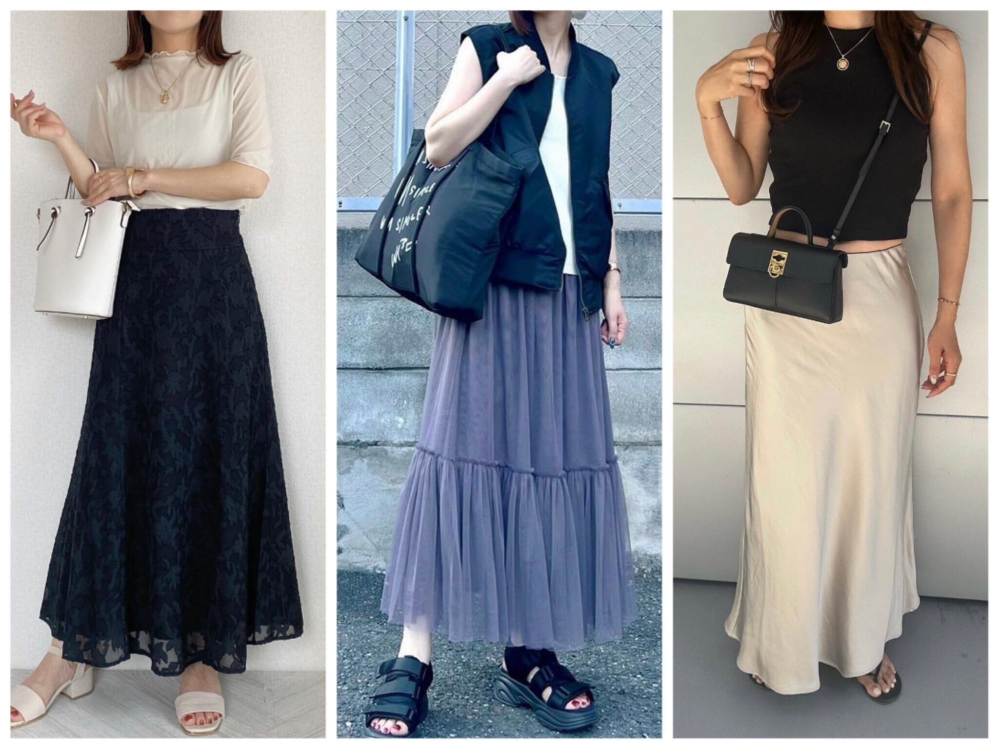 夏のマンネリファッションのスパイスに!「サテンロングスカート」