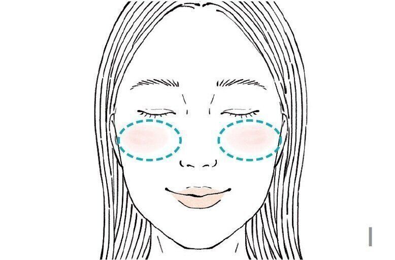 「ファンデを塗る前に、チークをほお骨にのせて、だ円を描くように広げます。このあとファンデを重ねると、自然な血色が手に入るんです。アイシャドウを同色にすると、失敗がなく垢抜け顔に!」。