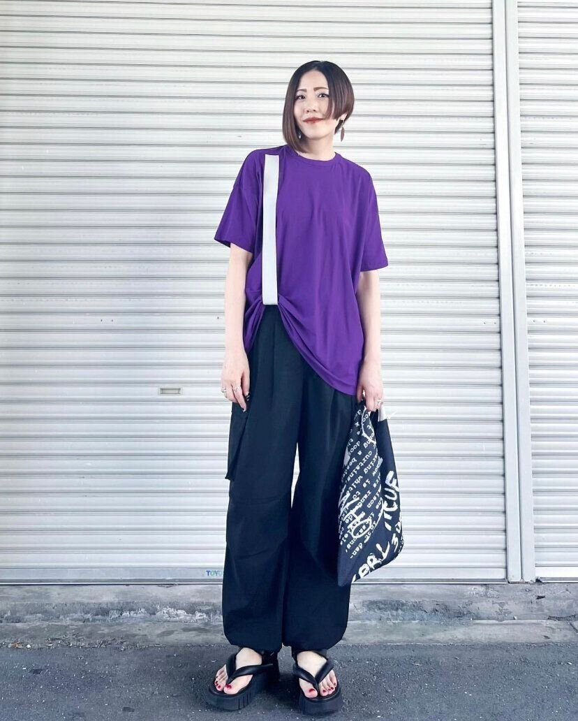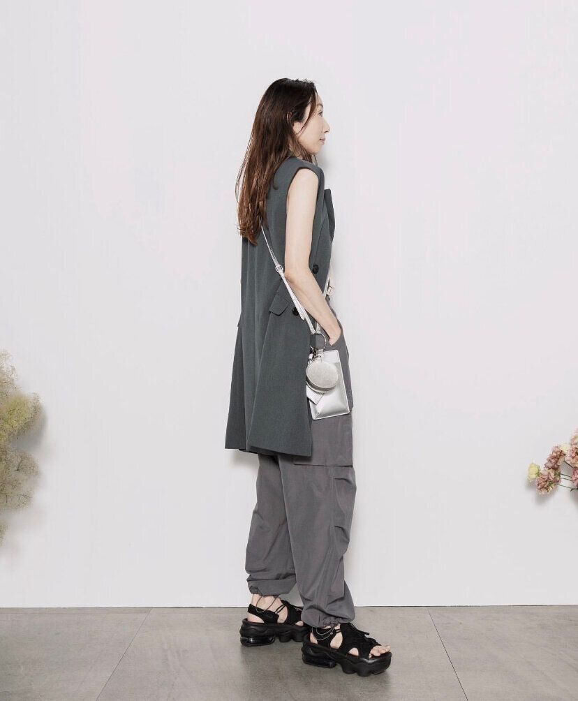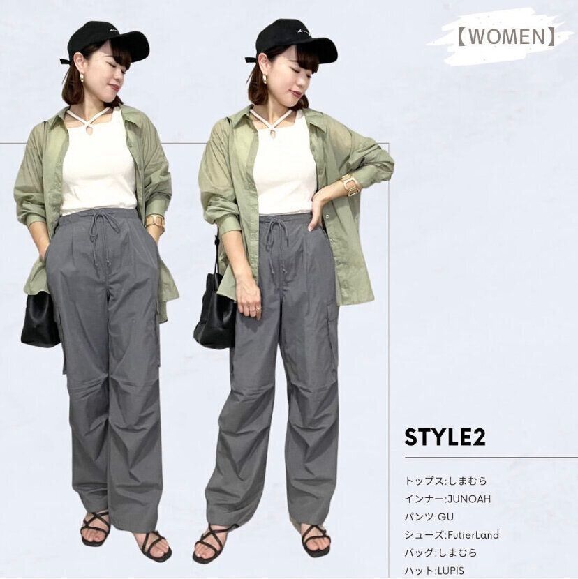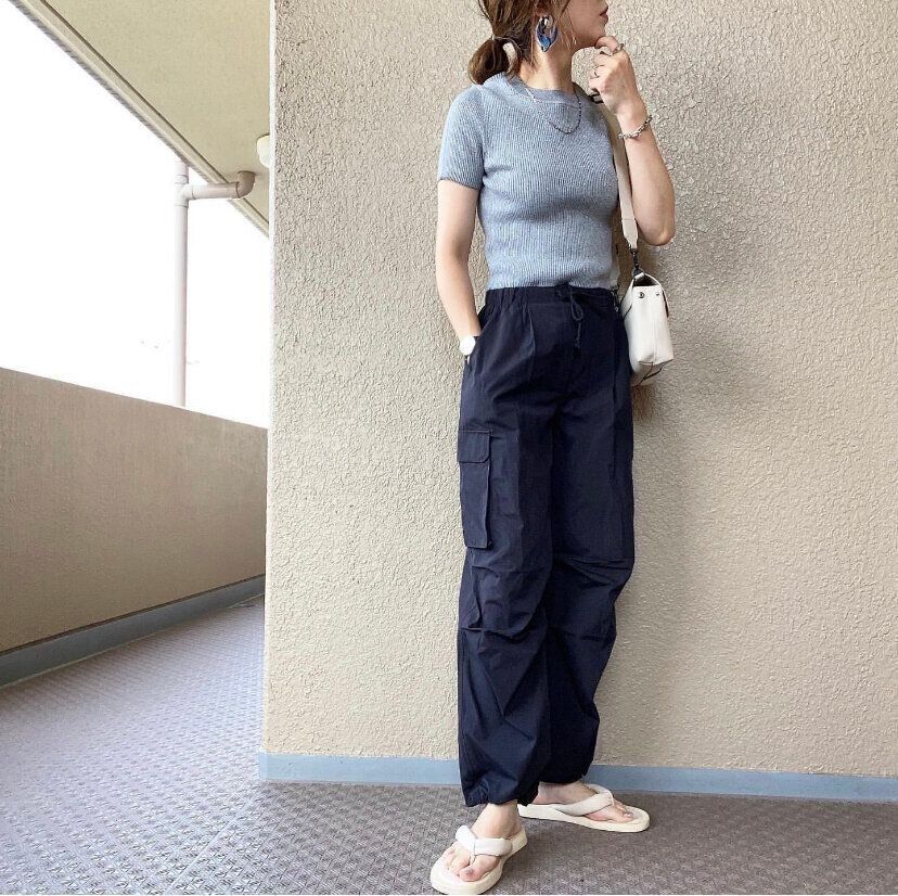 男女ともに発売されているパラシュートカーゴパンツですが、グレーはレディースのみの販売。Instagramで活躍するファッションインフルエンサーはグレーをチョイスしている人が多い印象です。グレーもブラックと同様ほとんどのカラーとの相性が良いので着回し力も問題なし!カジュアルなスタイルに女性らしい柔らかい印象をプラスしてくれます。
