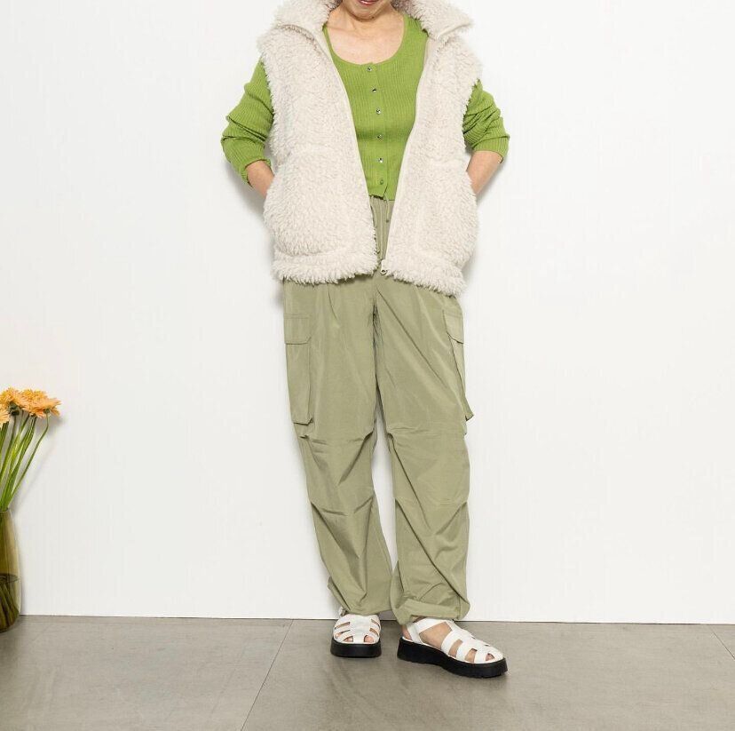パラシュートカーゴパンツはカジュアルな要素が強いパンツなので、普段きれいめファッションを好む人にはハードルが高いかもしれません。そんな人はホワイトをチョイスするのがおすすめ。ホワイトなら、他のカラーよりもきれいめファッションと相性が良いですよ。