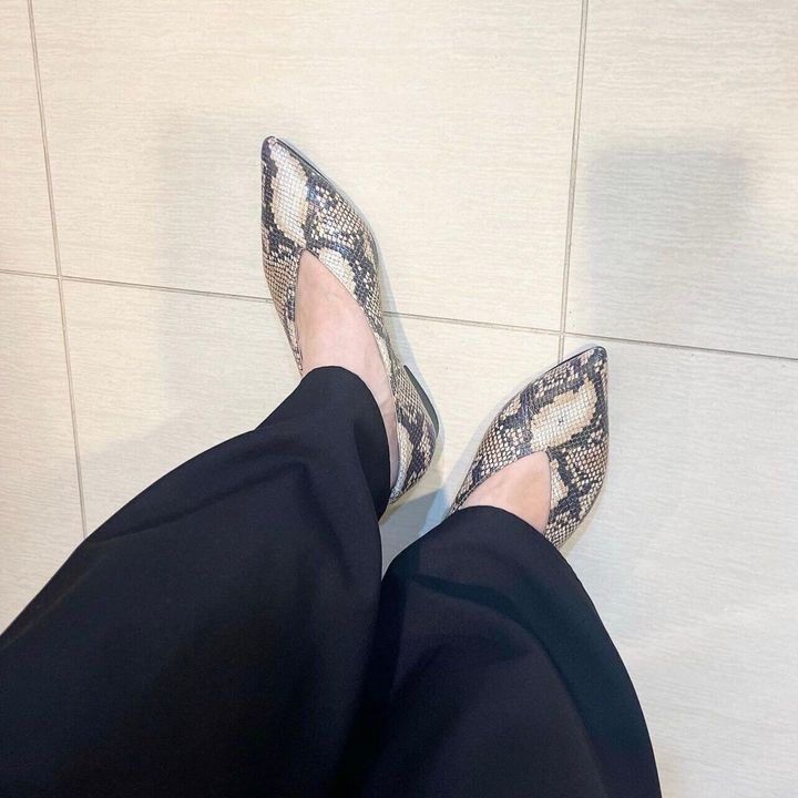 例えば、足元にポインテッドトゥのフラットシューズを取り入れてみるなど、若いころのように、ヒールである必要はありませんが、辛口アイテムが加わることでスタイリッシュに仕上がります。