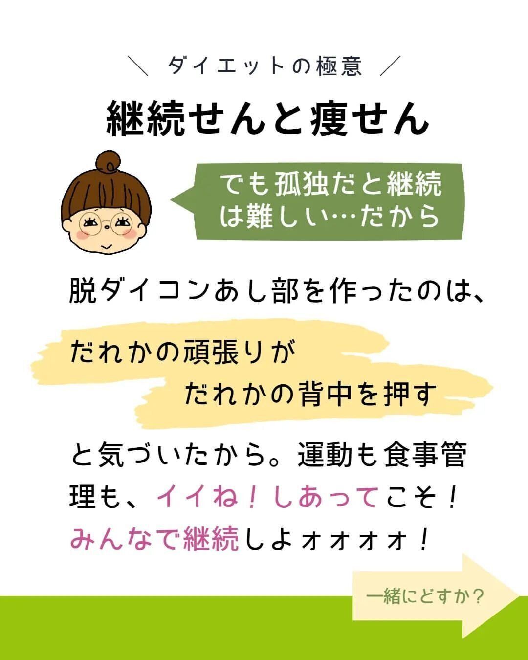 運動も食事管理も「ダイエットの極意は継続である」とppurin_dietさんはいいます。小さなことをコツコツと続けることできっと結果につながるのです。ppurin_dietさんの場合は、思い切ってSNSで公開ダイエットをしたことで、がんばりに背中を押してもらえ、継続する力になったといいます。