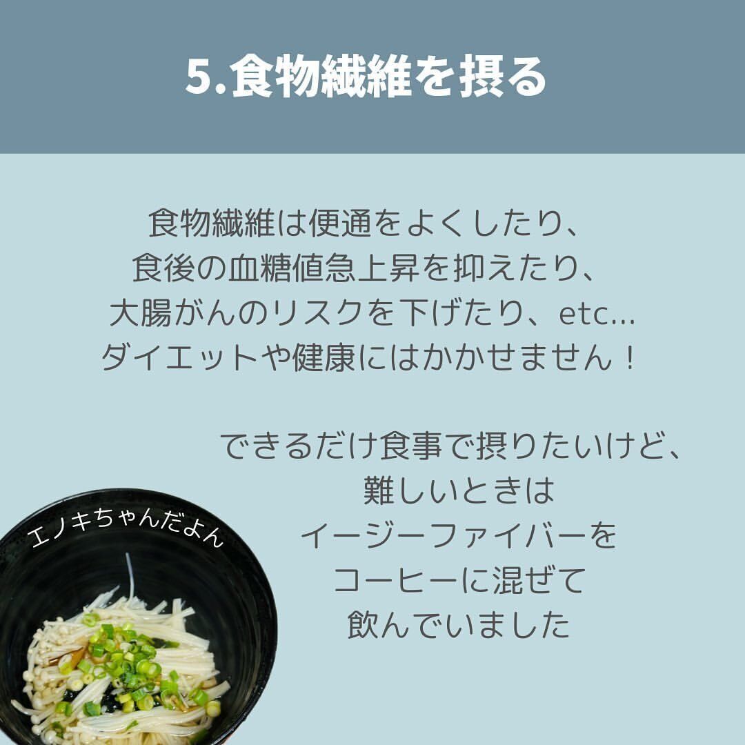 便通をよくしたり、食後の急激な血糖値の上昇をおさえたりするためにも、食物繊維をたくさんとるように心がけています。できるだけ食事だけでとりたいところですが、むずかしいときは市販のものにもたよっています。