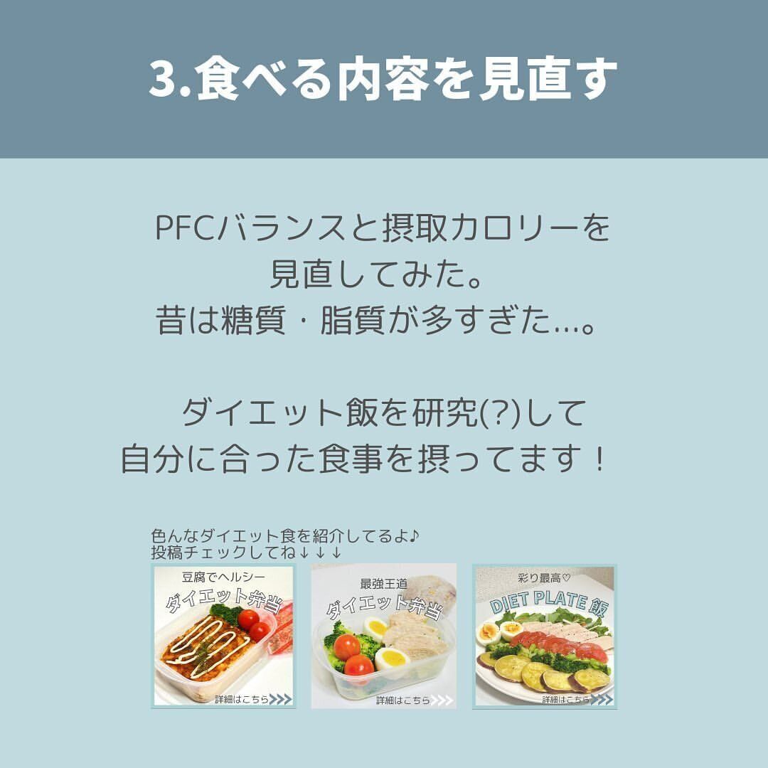 unamo_bodymake45さんの、「脂肪をそぎ落とす習慣」を教えてもらいました。ただ、ご本人いわく、ダイエットを始めた当初からこれらをやっていたわけではなく、自分に合わないものはやめるなど試行錯誤を繰り返した結果、残ったものだといいます。最初は、なかなか結果が出てこず、あきらめそうになったこともありましたが、少しずつ変化が出ていることを感じ、信じてがんばっていたところ、いつの間にか習慣になっていたといいます。