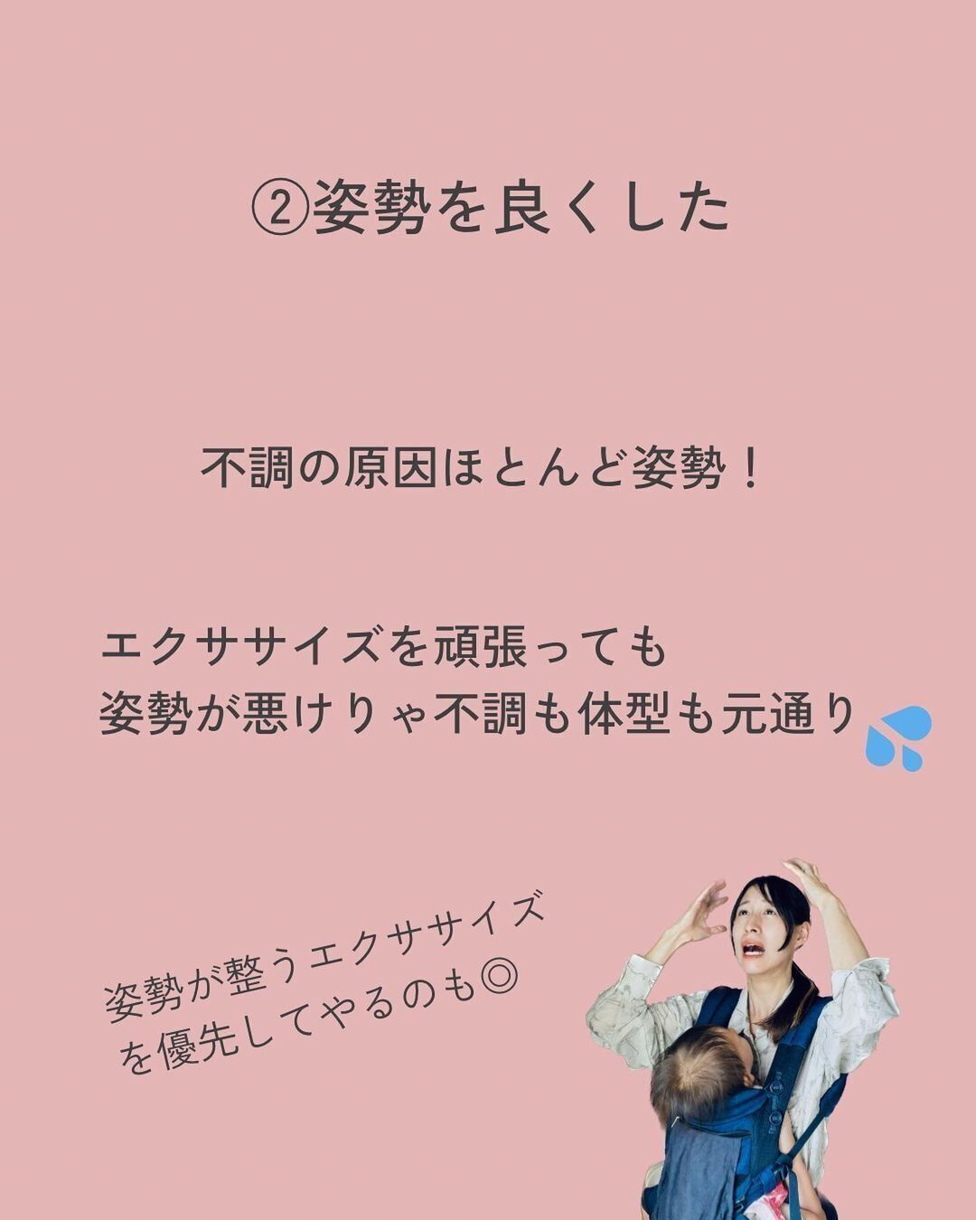 kana_sango_さんが、痩せるためにした健康習慣をご紹介しました。「不調改善につとめる」「姿勢をよくする」「深い呼吸をする」「水飲む」「早く寝る」と、なんだかダイエットに一見関係のなさそうなことばかりですが、すべてが健康な体へとつながっていたのです。「自分の不調をバロメーターにするのが産後ダイエットのカギ」だといいます。まずは、自分の体に耳を傾けて、辛いところが最初に取り組む課題なのです。人によってきっと違うはずですよね。