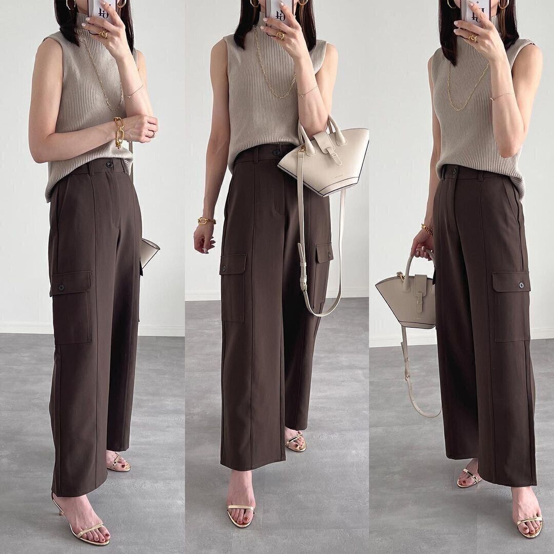 カジュアルなカーゴパンツを上品に着こなしてみたいなら、センターシーム入りのGU「カーゴワイドパンツ/2,990円」をチョイス。深みのあるオリーブ色は白・黒はもちろん、ベージュやグレーまで幅広いカラーにマッチします。ワイドなシルエットなので、コンパクトなトップスを合わせるとバランスがきれいに。