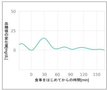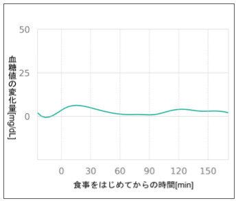 砂糖入りコーヒーは、飲み始めてから徐々に血糖値が上がり、30分後にピークを迎えています。その後、コーヒーを飲んでから50分程で正常値に戻りました。