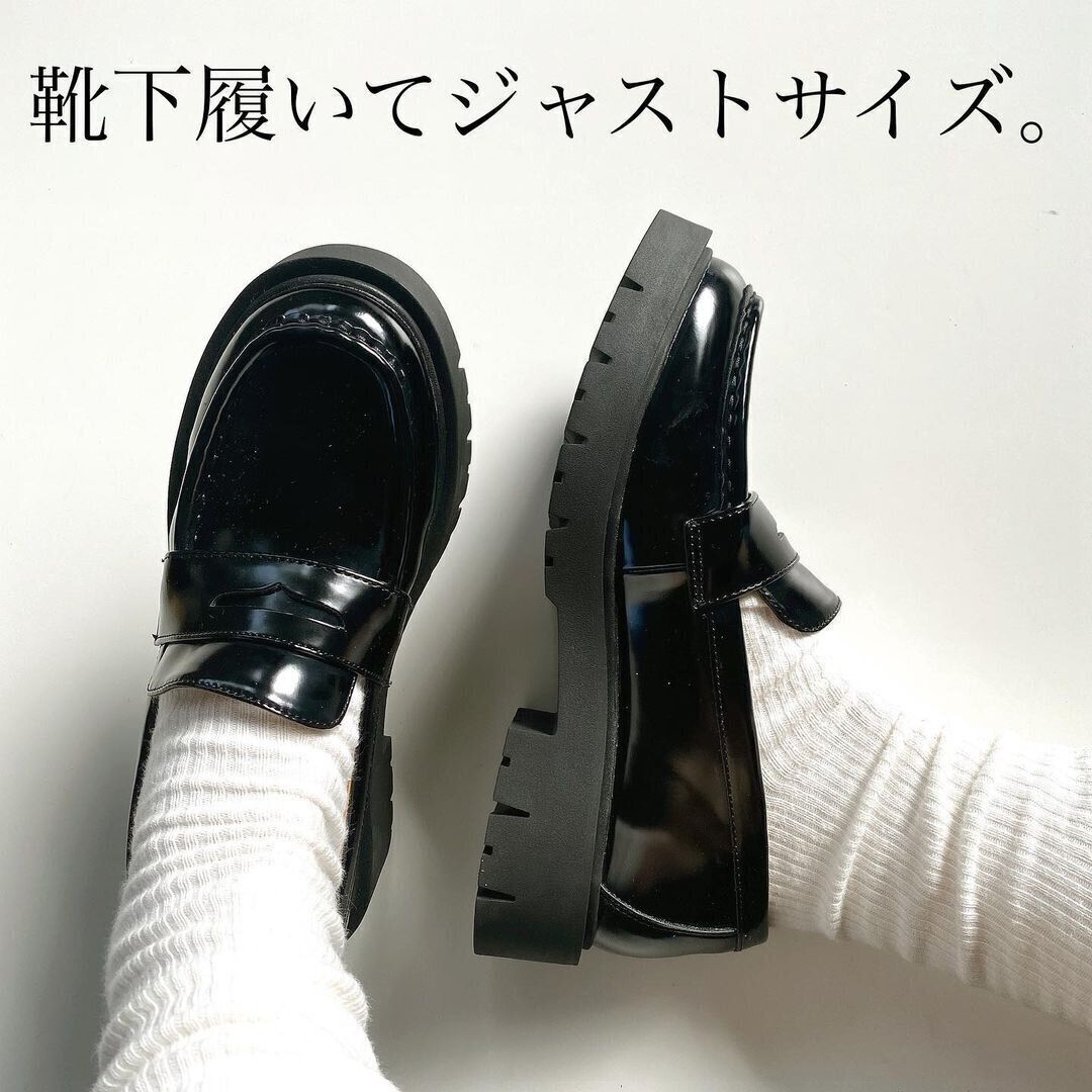 厚底のアウトソールはデザインのアクセントになるだけでなく、すべりにくさにもこだわっています。こんなローファーを持っておけば、天候の悪い日も安心して履いていくことができますね。