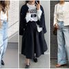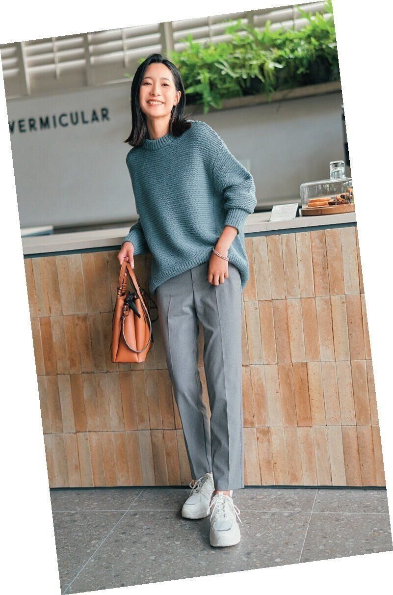 ざっくりニットを合わせてカジュアルに。足元はボリュームのあるスニーカーにするとメリハリが効いて今どきに。