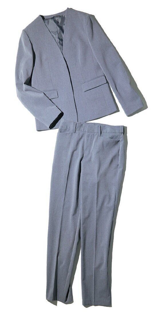 ジャケットはノーカラーがイチ推し。首周りがすっきりして、様々なインナーに合わせやすいので1枚あると重宝します。ライトグレーなら、カジュアルダウンもしやすく最強。