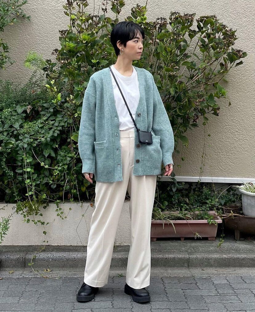 アウターとしても使える「パフィータッチオーバーサイズカーディガン」(2,990円)は、ルーズなシルエットとふわふわの素材感が秋冬感満載の大人気ベーシックアイテム。シンプルなアイテムだからこそ着回し力が抜群で、トレンドやテイストを選ばず着用できます。大人っぽく着用したいなら、モノトーンでまとめたコーディネートがおすすめ。小物でカラーをプラスするテクニックがおしゃれ!