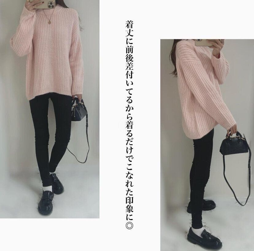 ライトグレー・ダークグレー・ピンク・ブラウンの4色展開のパフィータッチローゲージクルーネックセーターですが、ファッションインフルエンサーに一番人気のカラーはずばり「ピンク」。やわらかいパステル調の色味で、暗くなりがちな秋冬ファッションに明るさをプラスしてくれます。ブラックと合わせればかわいくなりすぎないのでアラフォー女性でも抵抗なく着こなせますよ。